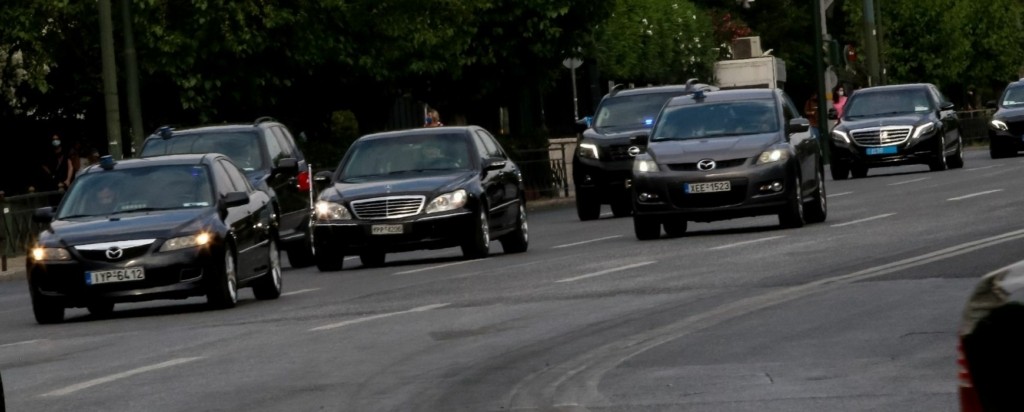 Λίγο πριν τις 20:00 αναχώρησε από το κεντρικό ξενοδοχείο της πρωτεύουσας για τον εστιατόριο Διόνυσος, στην Ακρόπολη, όπου τον υποδέχτηκε θερμά ο Έλληνας ΥΠΕΞ Νίκος Δένδιας.