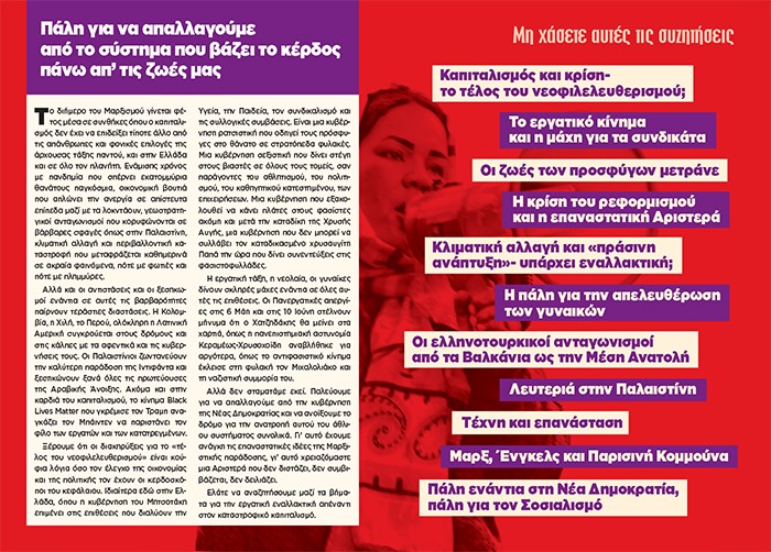 Αλλά δεν σταματάμε εκεί. Παλεύουμε για να απαλλαγούμε από την κυβέρνηση της Νέας Δημοκρατίας και να ανοίξουμε το δρόμο για την ανατροπή αυτού του άθλιου συστήματος συνολικά. Γι’ αυτό έχουμε ανάγκη τις επαναστατικές ιδέες της Μαρξιστικής παράδοσης, γι’ αυτό χρειαζόμαστε μια Αριστερά που δεν διστάζει, δεν συμβιβάζεται, δεν δειλιάζει.