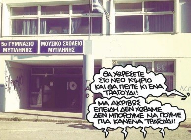 Οι γονείς των μαθητών του Μουσικού Σχολείου Μυτιλήνης και η εκπαιδευτική κοινότητα της περιοχής διαμαρτύρονται έντονα για τη μεταστέγαση του σχολείου σε τμήμα των εγκαταστάσεων των σχολών του ΟΑΕΔ και τη μη καταλληλότητα των συγκεκριμένων κτηριακών εγκαταστάσεων στην Παναγιούδα.