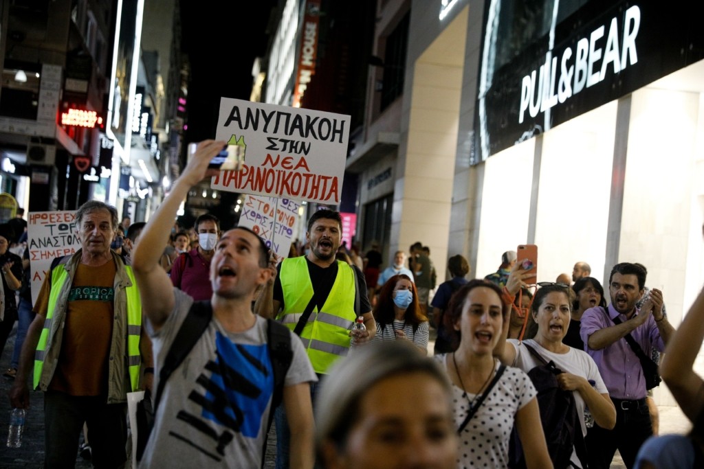 Με συνθήματα ενάντια στο μέτρο των αναστολών και σε συσχετισμό με τα Κίτρινα Γιλέκα της Γαλλίας, οι υγειονομικοί πραγματοποίησαν διαδήλωση μέχρι την πλατεία Συντάγματος.