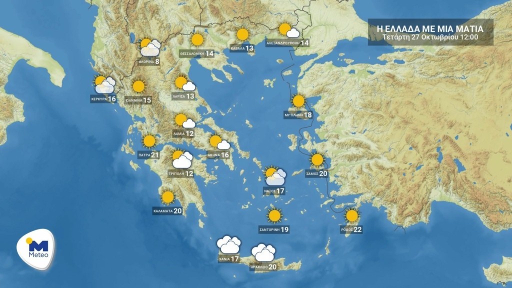 Παροδικές νεφώσεις κυρίως στα κεντρικά και νότια με μικρή πιθανότητα για τοπικές βροχές στα ανατολικά ηπειρωτικά και την Κρήτη αναμένονται σήμερα, Τετάρτη 27 Οκτωβρίου 2021.