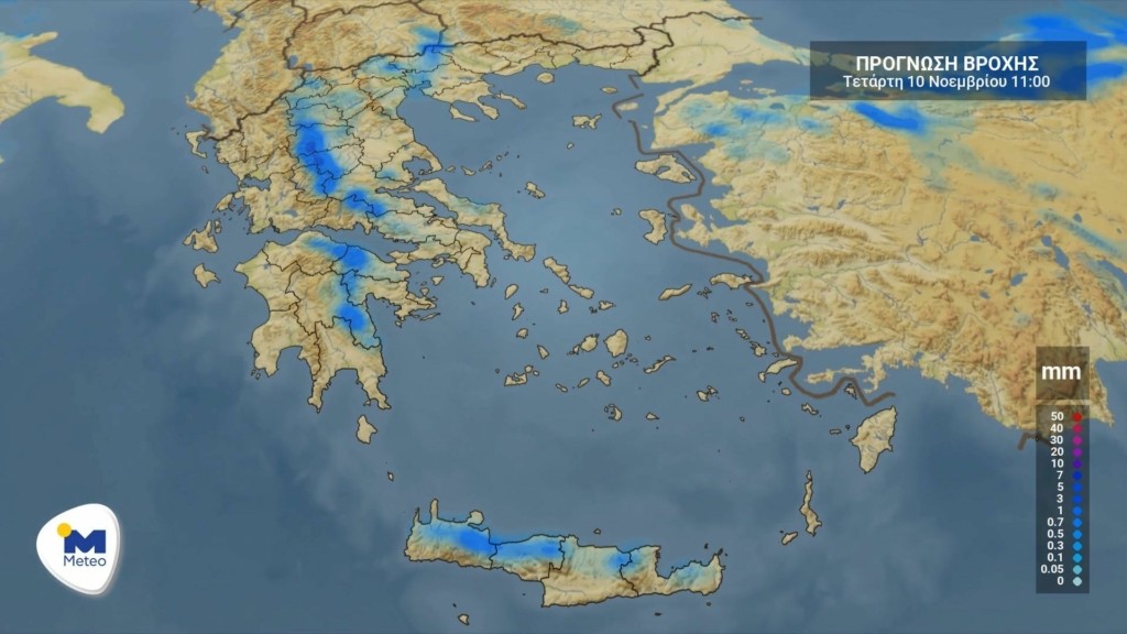 Τοπικές βροχές αναμένονται σήμερα, Τετάρτη 10 Νοεμβρίου, ενίσχυση των ανέμων αλλά και πτώση της θερμοκρασίας.