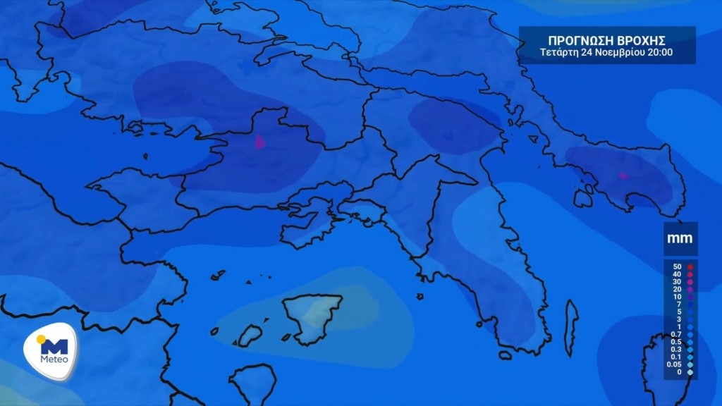 Βροχές και τοπικές καταιγίδες αναμένονται σήμερα, Τετάρτη 24 Νοεμβρίου 2021, κυρίως στα ανατολικά ηπειρωτικά, τα νησιά του Αιγαίου, τα Δωδεκάνησα και την Κρήτη.