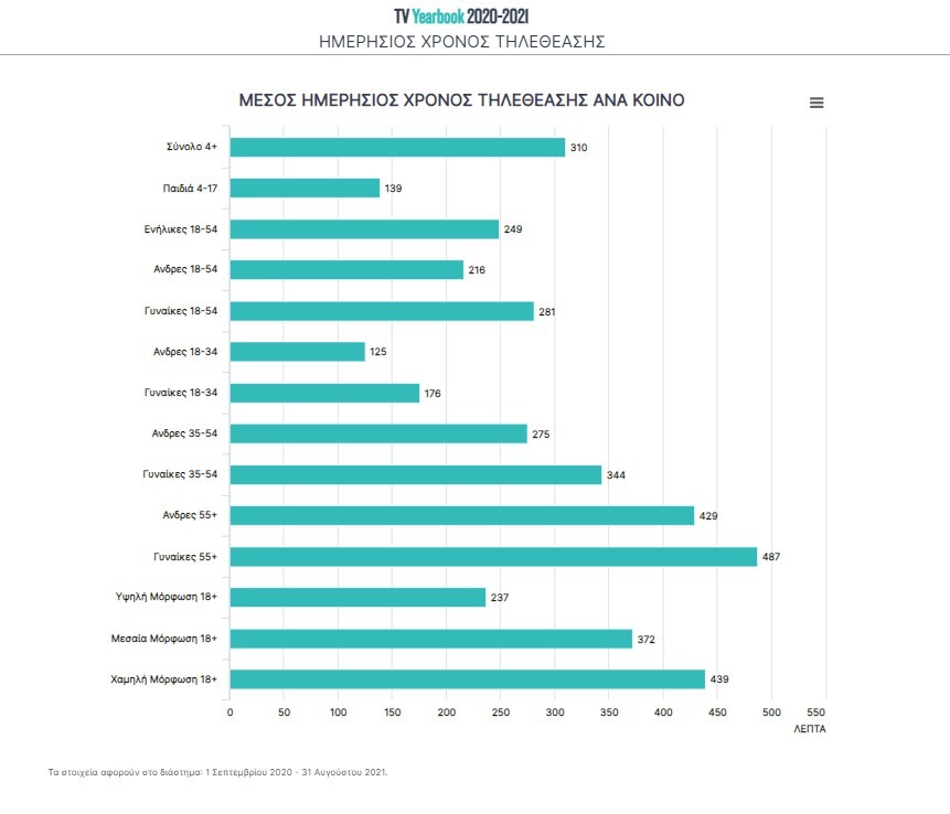 Πάντως από το τον πίνακα δεδομένων της Nielsen Audience Measurement για τον χρόνο τηλεθέασης ανα ηλικιακή ομάδα και μορφωτικό επίπεδο είναι ξεκάθαρο σε ποιους θέλει να απευθύνεται και για ποιους εν τέλει ενδιαφέρεται η ελληνική τηλοψία, ιδίως τα ιδιωτικά κανάλια που έχουν κάνει καραμέλα και ομνύουν στο αποκαλούμενο «δυναμικό» κοινό.