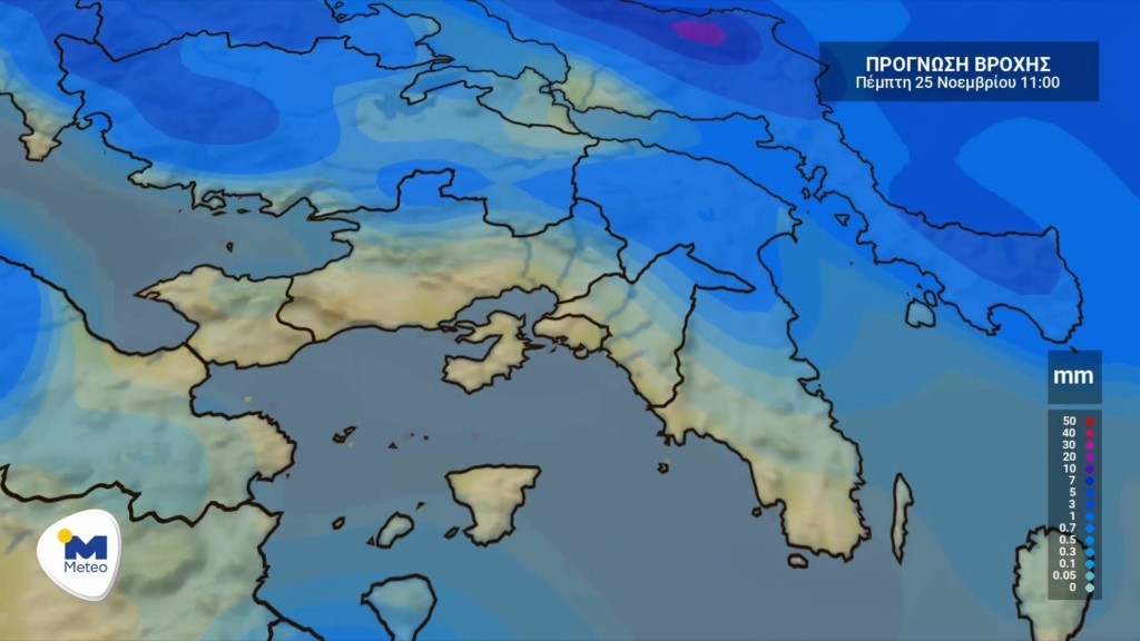 Νεφώσεις με τοπικές βροχές στα ανατολικά ηπειρωτικά, το Ιόνιο, την Ήπειρο, τη Δυτική Μακεδονία και την Κρήτη με σταδιακή εξασθένηση αναμένονται σήμερα, Πέμπτη 25 Νοεμβρίου 2021.