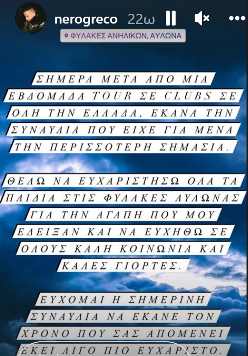 Θέλω να ευχαριστήσω όλα τα παιδιά στις φυλακές Αυλώνα, για την αγάπη που μου έδειξαν και να ευχηθώ σε όλους καλή κοινωνία και καλές γιορτές.