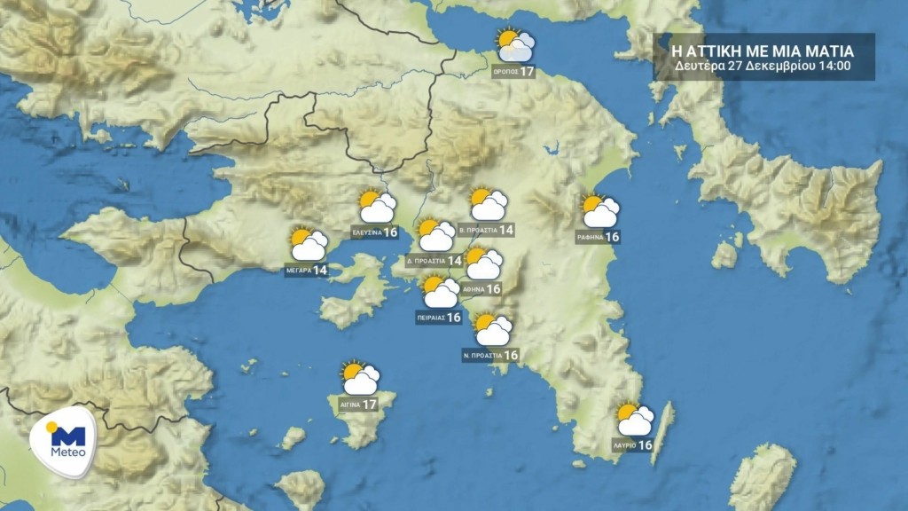 Βροχές και σε νησιωτικές και παράκτιες περιοχές ενδεχομένως καταιγίδες αναμένονται σήμερα, Δευτέρα 27 Δεκεμβρίου 2021.