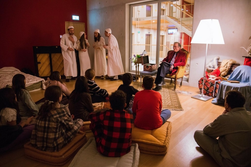 Οι Εκπαιδευτικές & Κοινωνικές Δράσεις της ΕΛΣ και ο Ευγένιος Τριβιζάς πρόσφεραν σε δέκα παιδιά, τα οποία επιλέχτηκαν με σειρά προτεραιότητας μετά από ανοιχτή πρόσκληση, την ευκαιρία να μυηθούν με μοναδικό τρόπο στον μαγικό κόσμο της Όπερας. Από το απόγευμα του Σαββάτου της 18ης Δεκεμβρίου 2021 μέχρι το πρωί της επόμενης ημέρας, τα παιδιά εξερεύνησαν δαιδαλώδη παρασκήνια, εισέβαλαν στις αίθουσες όπου γίνονται οι πρόβες του Μπαλέτου και της Ορχήστρας της ΕΛΣ, παρακολούθησαν σκηνές της παράστασης πίσω από τις κουίντες, επισκέφθηκαν το ατμοσφαιρικό βεστιάριο, όπου θαύμασαν τα φαντασμαγορικά κοστούμια διάσημων ρόλων της όπερας, όπως της Μαντάμας Μπαττερφλάι και της Αΐντας, έμαθαν να τραγουδούν στην ιαπωνική γλώσσα και απόλαυσαν ένα παραμυθένιο δείπνο, το οποίο, μεταξύ άλλων, περιλάμβανε αστροσάντουιτς, σούπα από λάμψεις πυγολαμπίδων και χρυσανθεμοσαλάτα. Λίγο πριν κοιμηθούν, ο Ευγένιος Τριβιζάς, ενώ έβγαζε μέσα από ένα μυστηριώδες σεντούκι ένα ένα τα μαγικά λυχνάρια, τους αφηγήθηκε ένα συναρπαστικό παραμύθι. Τη βραδιά έκλεισε τετραμελές φωνητικό σύνολο με ολόσωμα νυχτικά και σκούφους που νανούρισε μελωδικά τους μικρούς επισκέπτες ώσπου αποκοιμήθηκαν.