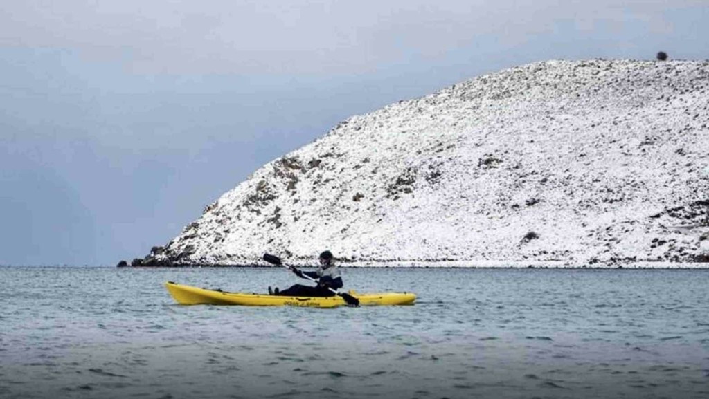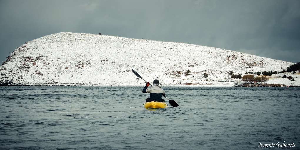 Δεν τους πτόησε η κακοκαιρία Ελπίς – με τα πολλά χιόνια – και είπαν να βγουν για κανόε καγιάκ.