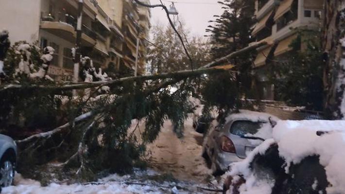 Σε πολλούς δρόμους των Σεπολίων έχουν πέσει κλαδιά στη μέση του οδοστρώματος, πάνω σε καλώδια της ΔΕΗ, σε αμάξια, μπαλκόνια, πεζοδρόμια.