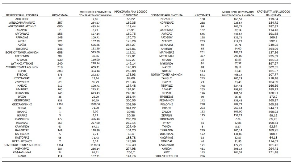 Στο κόκκινο παραμένει η Αττική με 5.012 νέες μολύνσεις, ενώ ακολουθεί η Θεσσαλονίκη με 2.316.