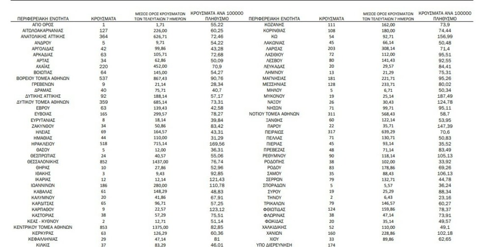 Σύμφωνα με τη γεωγραφική κατανομή τα περισσότερα νέα κρούσματα και σήμερα εντοπίζονται στην Αττική. Ακολουθεί η Θεσσαλονίκη με 852 και η Κρήτη με 840!