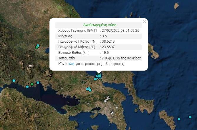 Σημειώθηκε 7 χιλιόμετρα Βόρεια και Βορειοδυτικά της Χαλκίδας.