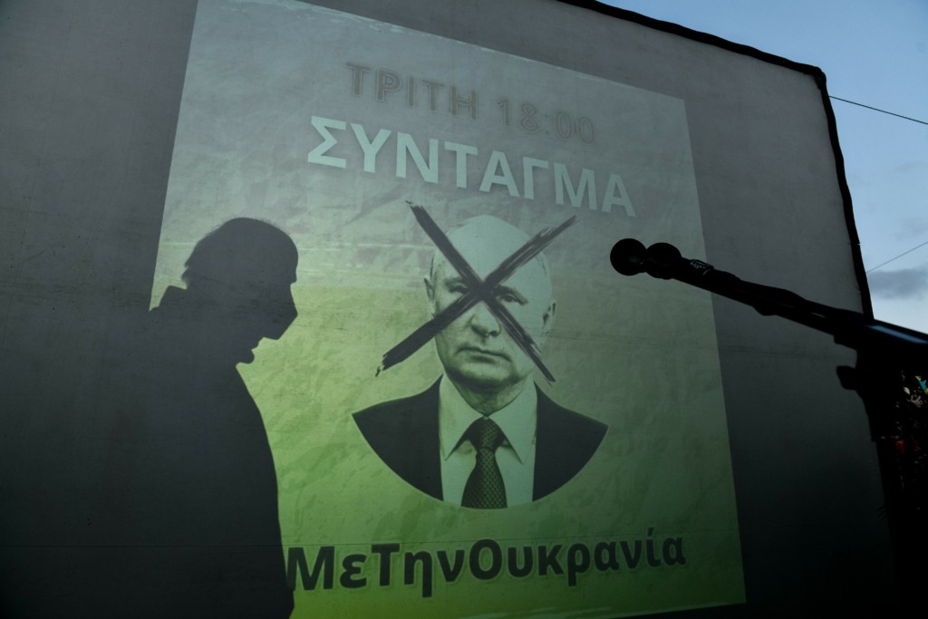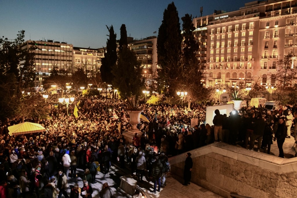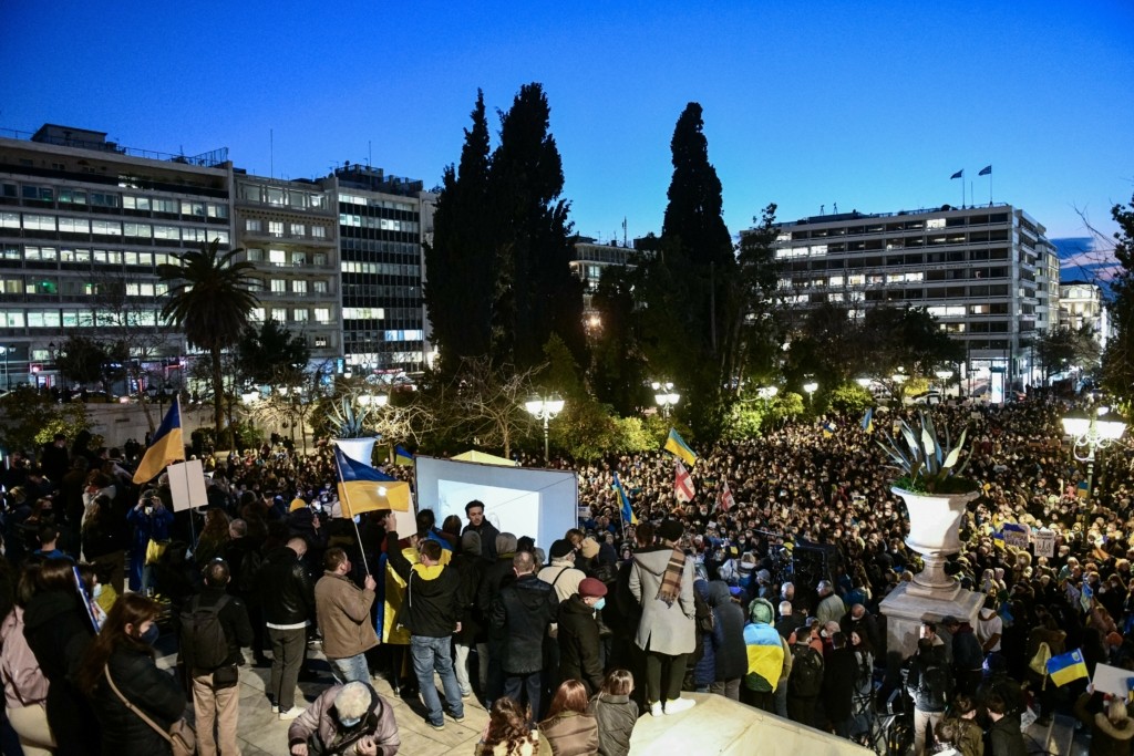 Αντιπολεμική συγκέντρωση εναντίον της ρωσικής εισβολής στην Ουκρανία διοργανώθηκε το απόγευμα της Τρίτης στο Σύνταγμα.