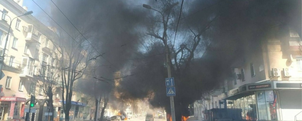 Στον λογαριασμό της στο Telegram, η πολιτοφυλακή άμυνας του Ντονέτσκ δημοσίευσε φωτογραφίες που δείχνουν ματωμένα πτώματα να κείτονται στο δρόμο εν μέσω ερειπίων, αλλά και ένα μικρό λεωφορείο με σπασμένα τα τζάμια στην πόλη της Ουκρανίας.