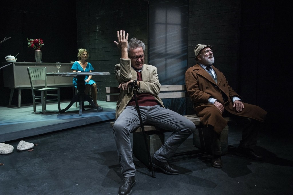 Τους τρεις αινιγματικούς ρόλους του έργου ερμηνεύουν οι Παναγιώτα Βλαντή, Θανάσης Κουρλαμπάς και Χάρης Τσιτσάκης.