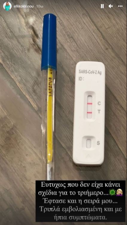 Θετική στον κορωνοϊό είναι η Έλλη Κοκκίνου, όπως γνωστοποίησε η ίδια στους διαδικτυακούς της ακολούθους, ανεβάζοντας στα instastories το θετικό τεστ.