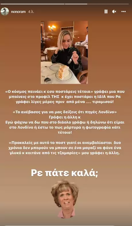 Λίγα λεπτά μετά τη νέα της ανάρτηση η παρουσιάστρια επανήλθε απαντώντας σε όσους έκαναν λόγο για προκλητικό post, ή για ταξίδι της στο Λονδίνο.