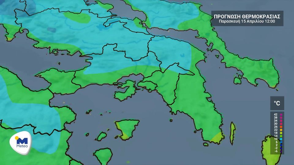 Η θερμοκρασία θα κυμανθεί στη Δυτική Μακεδονία από 2 έως 21 βαθμούς, στην υπόλοιπη Βόρεια Ελλάδα από 1 έως 23, στην Ήπειρο από 3 έως 25 βαθμούς, στη Θεσσαλία από 2 έως 23, στα υπόλοιπα ηπειρωτικά από 2 έως 24 βαθμούς, στα νησιά του Ιονίου από 7 έως 23 και στα νησιωτικά τμήματα του Αιγαίου και στην Κρήτη από 3 έως 21 βαθμούς Κελσίου.