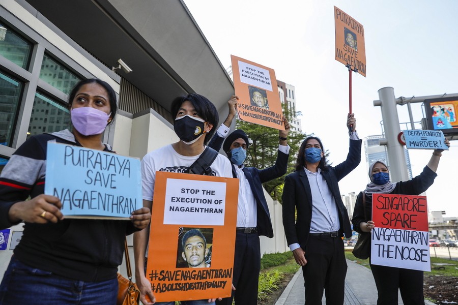 Ο Ναγκαέντραν Νταρμαλίνγκαμ είχε συλληφθεί το 2009 για διακίνηση μικροποσότητας ηρωίνης στην πόλη-κράτος, όπου η νομοθεσία για τα ναρκωτικά συγκαταλέγεται στις πιο δρακόντειες στον κόσμο. Καταδικάστηκε στην εσχάτη την ποινών το 2010.