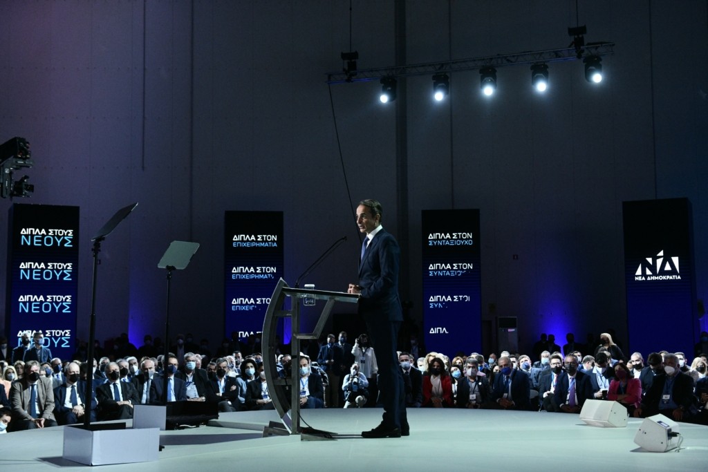 Η διαρρύθμιση είναι ενδιαφέρουσα και πολύ μοντέρνα, ωστόσο, αυτό δεν… βοήθησε τον Κυριάκο Μητσοτάκη να φθάσει πιο γρήγορα στη θέση του, καθώς κατά την είσοδό του στην αίθουσα χρειάστηκαν αρκετά λεπτά μέχρι να περάσει μέσα από τους συνέδρους, με όλους θα θέλουν να του σφίξουν το χέρι, να ανταλλάξουν δυο κουβέντες ή να βγάλουν σέλφι, με τον πρόεδρο της ΝΔ να μην χαλάει χατήρι.
