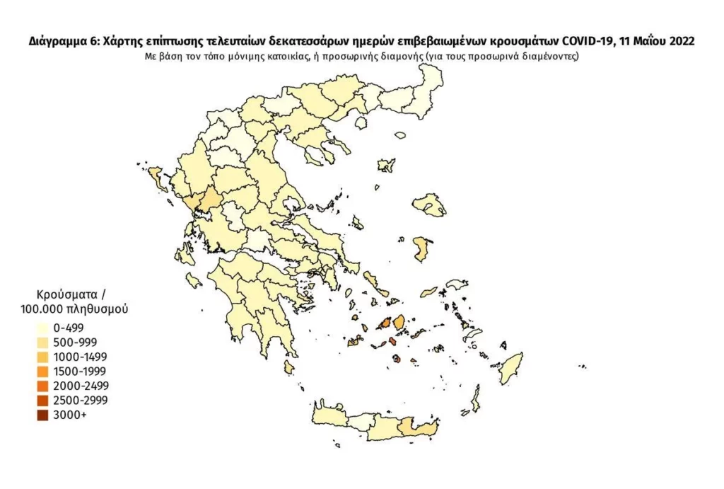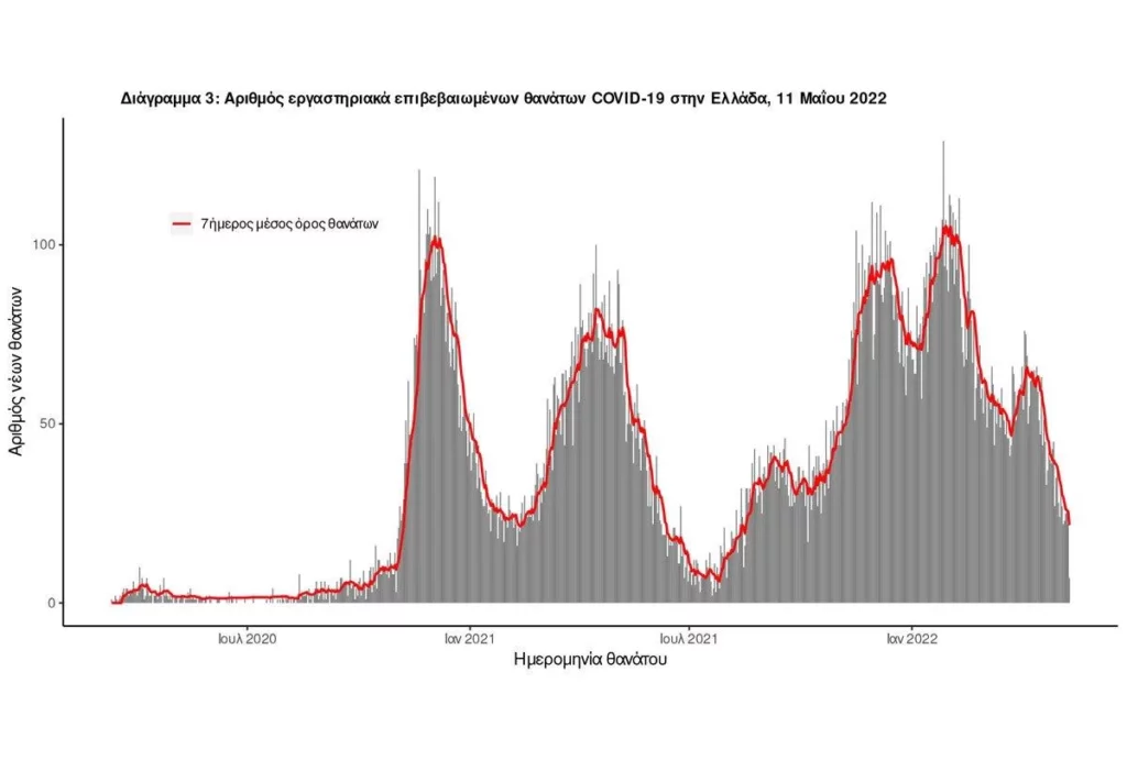 Σύμφωνα με τα συγκεντρωτικά στοιχεία του ΕΟΔΥ, το ποσοστό θετικότητας την εβδομάδα 2-8 Μαΐου ήταν 5.25% σε σύνολο 671.352 εργαστηριακών ελέγχων (RT PCR/Rapid-Ag).
