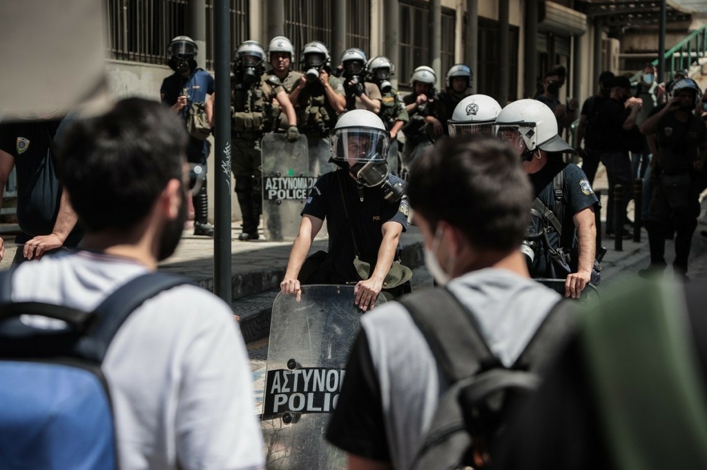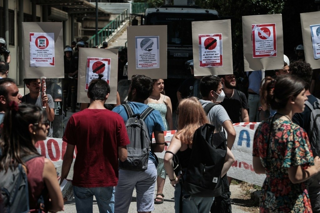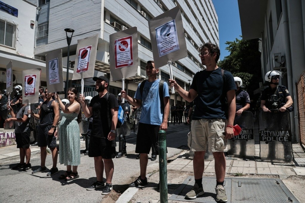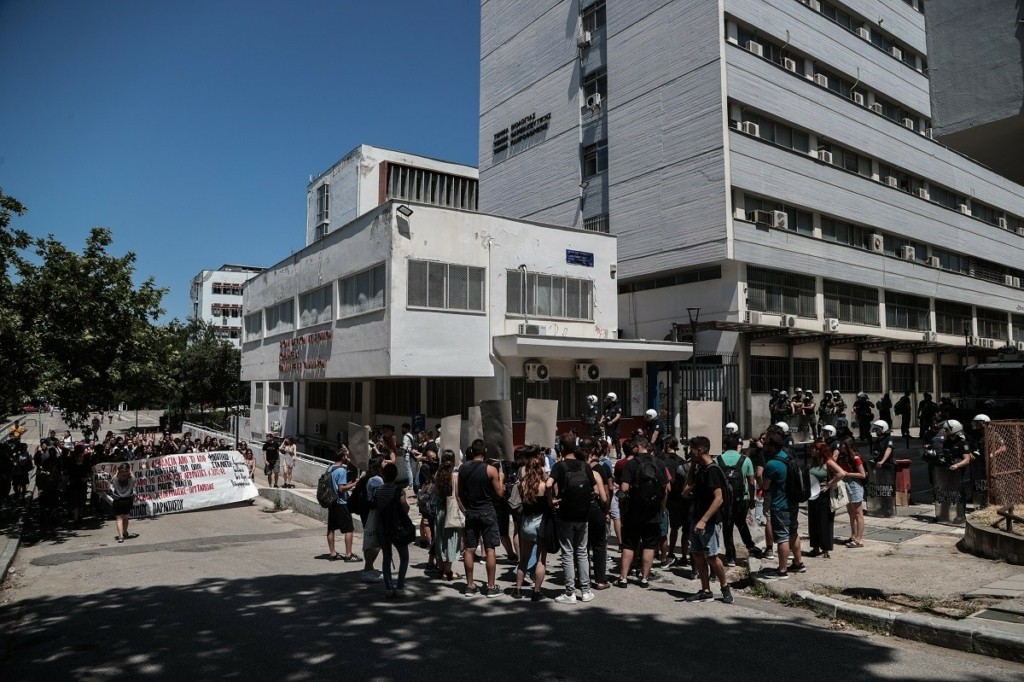 Οι φοιτητές, που στους συλλόγους τους εκπροσωπούνται από το σχήμα των ΕΑΑΚ και το ΜΑΣ κρατώντας πλακάτ παρατάχθηκαν μπροστά από τις δυνάμεις της αστυνομίας που περιφρουρούν τον χώρο, φώναξαν συνθήματα και μετά από περίπου μία ώρα αποχώρησαν.