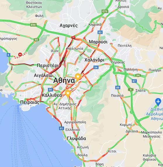 Πολλά προβλήματα εντοπίζονται από νωρίς το πρωί σε πολλούς κεντρικούς δρόμους της Αττικής.