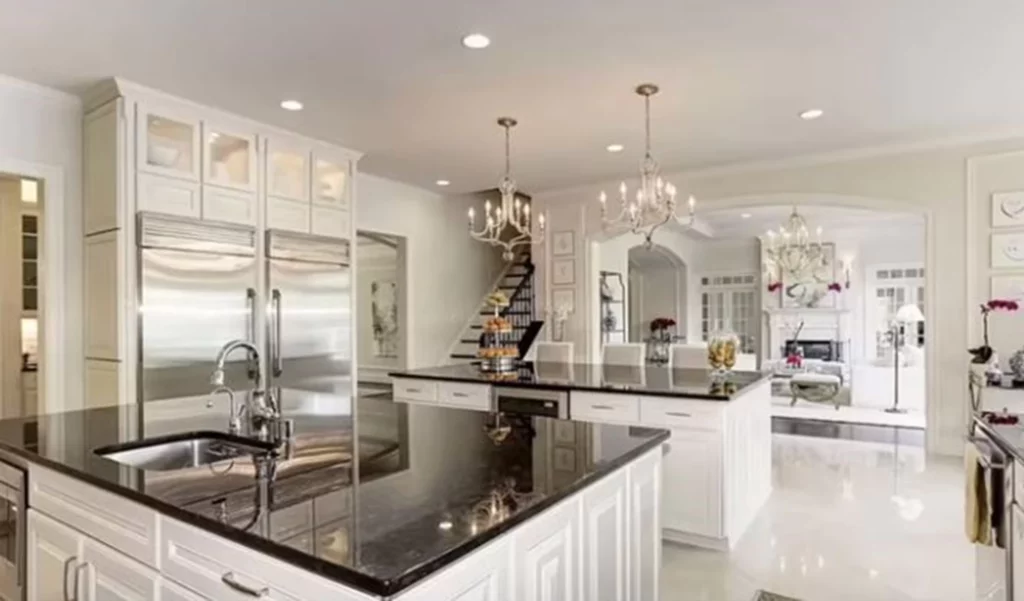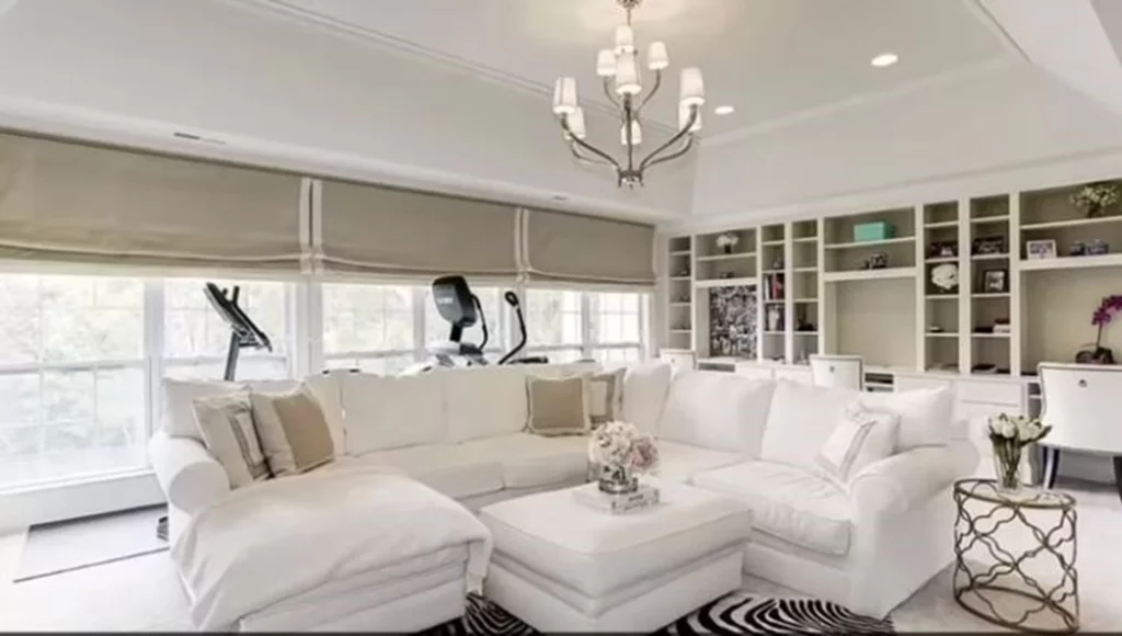 Η έπαυλη διαθέτει γήπεδο τένις, οικιακό κινηματογράφο, οκτώ υπνοδωμάτια, σπα και μία μοναδικού ύφους εντυπωσιακή σκάλα στην είσοδο.