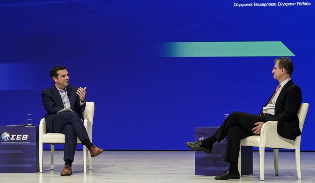 Ο πρώην πρωθυπουργός αφού επισήμανε ότι είναι γνωστές οι διαφωνίες μεταξύ τους, σχολίασε ότι επί διακυβέρνησης ΣΥΡΙΖΑ η κριτική του ΣΕΒ επικεντρώθηκε στη φορολογία και στη παρέμβαση του κράτους στην αγορά, ενώ κάποιες φορές ορισμένοι παρέβλεπαν σημαντικές επιτυχίες, όπως είπε: έξοδος από την οκταετή επιτροπεία, ρύθμιση χρέους, επιστροφή στις διεθνείς αγορές χρήματος, επαναφορά της οικονομίας σε σταθερή αναπτυξιακή τροχιά, ”μαξιλάρι” 37 δισ. ως κάλυψη και ανάχωμα για πιθανούς μελλοντικούς κινδύνους.