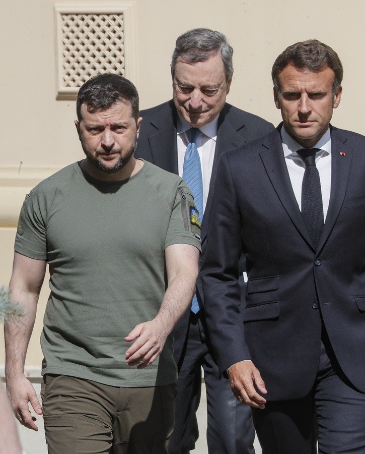 Ο Βολοντίμιρ Ζελένσκι υποδέχτηκε τους ηγέτες της Γαλλίας, της Γερμανίας και της Ιταλίας στο προεδρικό μέγαρο του Κιέβου, σε μία συνάντηση που διέφερε από όσες έχουν κάνει οι ηγέτες των τριών ισχυρότερων ευρωπαϊκών οικονομιών, αφού το κτήριο είναι αποκλεισμένο λόγω του πολέμου.