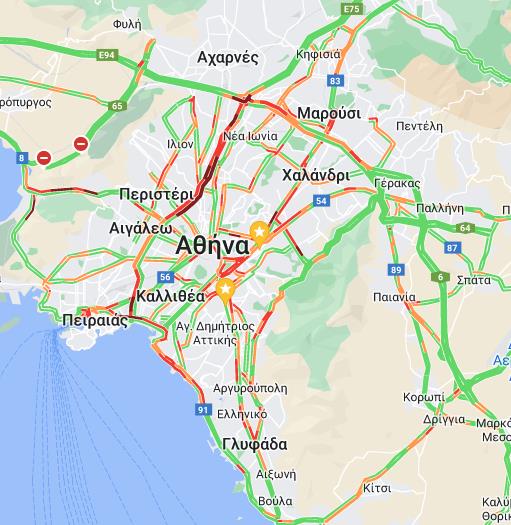 Μέχρι στιγμής στο υπόλοιπο οδικό δίκτυο της Αττικής και στην Αττική Οδό τα οχήματα κινούνται χωρίς ιδιαίτερα προβλήματα.