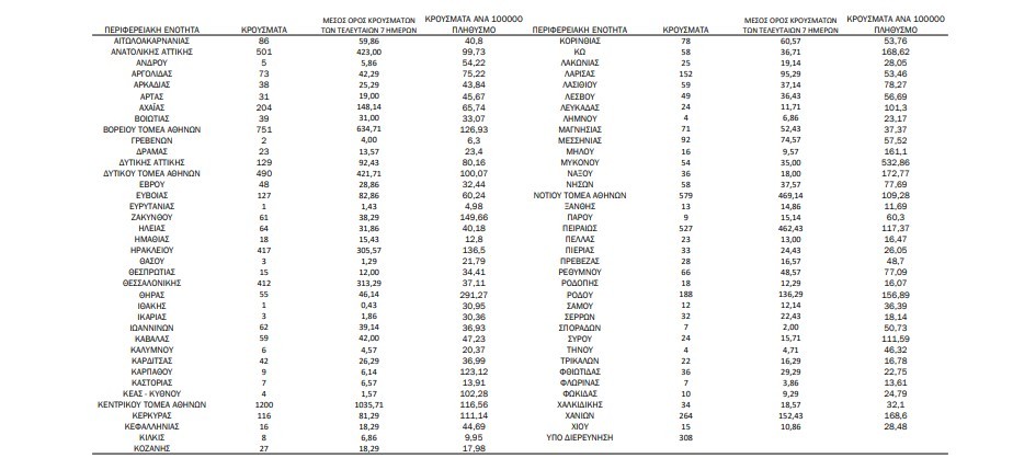 Από τις νέες μολύνσεις οι 4.235 εντοπίστηκαν την Αττική, 806 στην Κρήτη και 412 στη Θεσσαλονίκη.