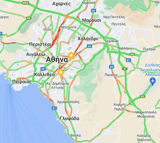 Με χαμηλές ταχύτητες κινούνται τα οχήματα επίσης στην Λεωφόρο Αθηνών στο ρεύμα προς Ασπρόπυργο από το ύψος του Χαϊδαρίου και στον Καρέα προς Κατεχάκη.