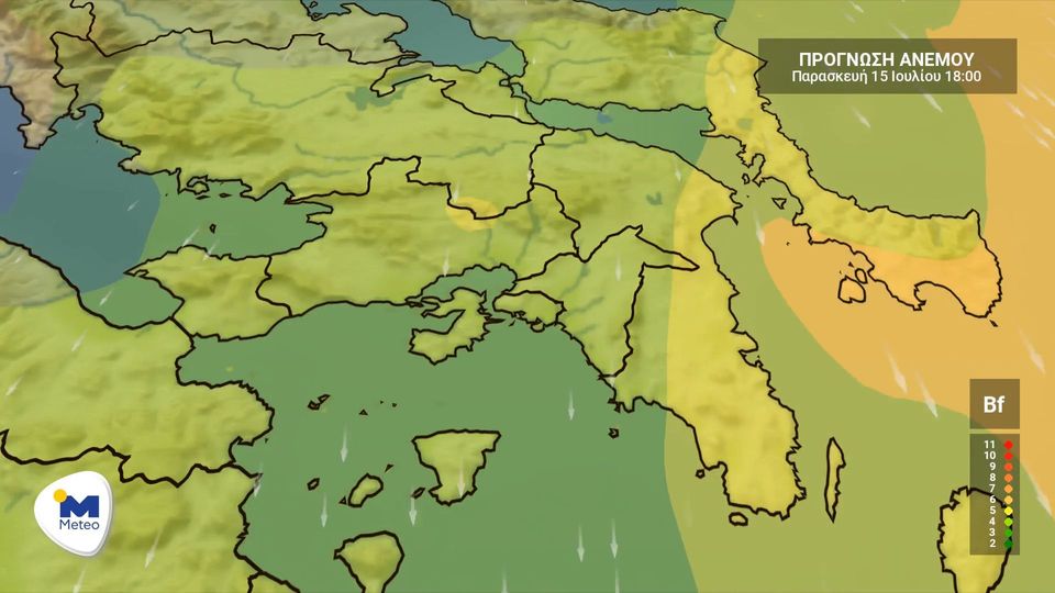 Μελτέμι με εντάσεις 6-7 μποφόρ θα σημειωθεί στο Αιγαίο, ενώ αρκετά δυσμενείς θα είναι οι πυρομετεωρολογικές συνθήκες στα νοτιοανατολικά ηπειρωτικά και στο Αιγαίο.