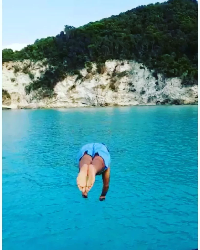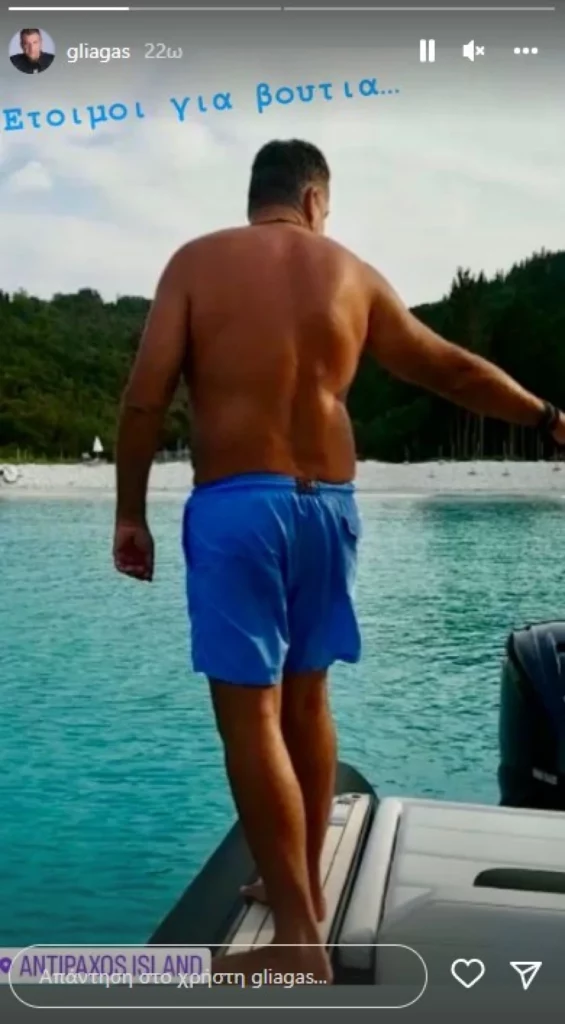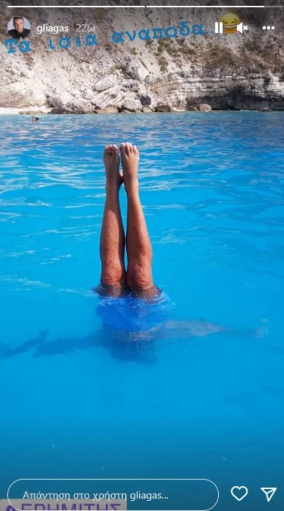 Τις τελευταίες ώρες ώρες ανάρτησε νέα stories από τις βουτιές του, ενώ σε μία από τις φωτογραφίες, ο παρουσιαστής φαίνεται να κάνει κατακόρυφο μέσα στο νερό.