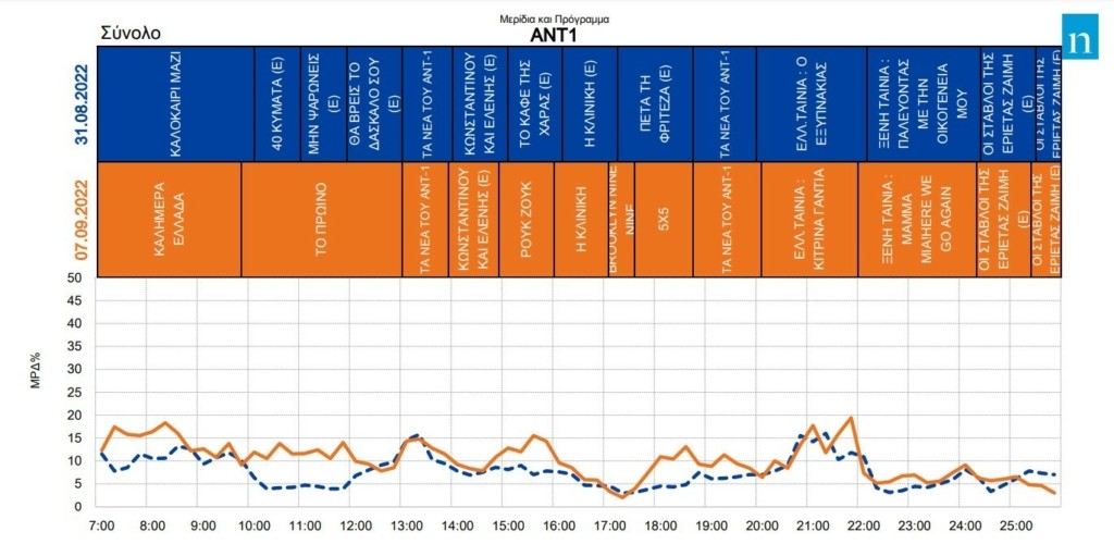 Με πιο σταθερό διάγραμμα απόδοσης, συγκριτικά με τον ανταγωνισμό, ο Alpha χθες (7/9) παρουσίασε καλύτερο μέσο όρο και το υψηλότερο μερίδιο από την πίτα τηλεθέασης της ημέρας σύμφωνα με τα δεδομένα της Nielsen.