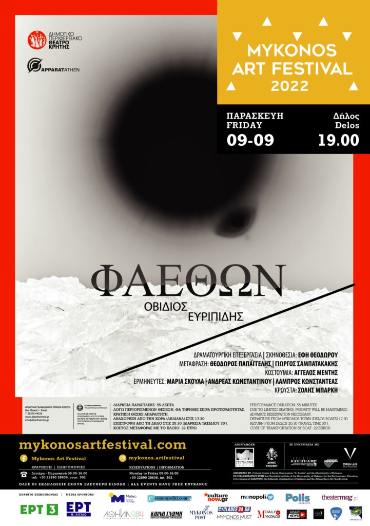 Η παράσταση είναι με ελεύθερη είσοδο. Αναχώρηση από την Χώρα (Δηλιανά) στις 17.30, επιστροφή από τη Δήλο στις 20.30 (διάρκεια ταξιδιού 30’).