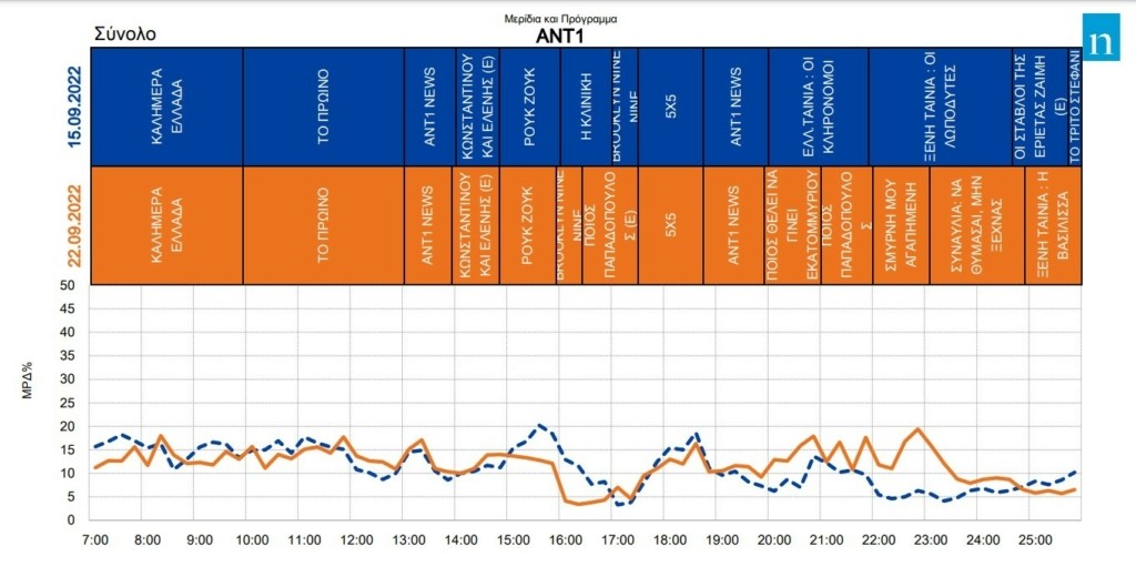 Ελαττώθηκε κάτι τι το μερίδιο του Σκάι και του Star, ανέβηκε λίγο του Open, μικρή υποχώρηση για την ΕΡΤ1, ενώ ΕΡΤ2, ΕΡΤ3 και ΜακεδονίαTV τα γνωστά.