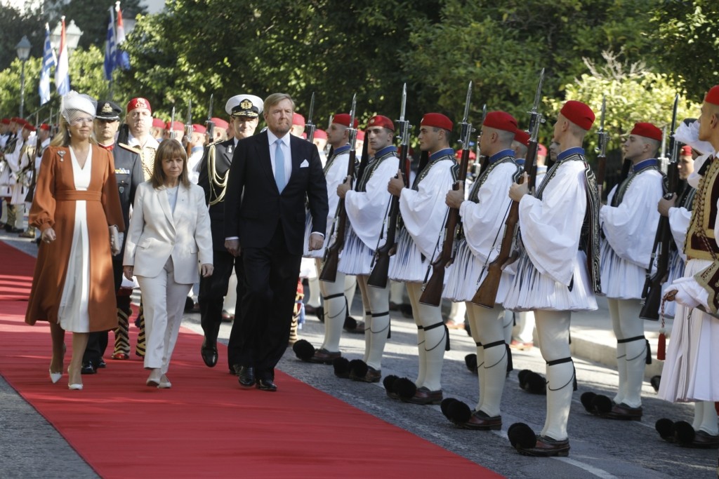 Στο Προεδρικό Μέγαρο έφτασε λίγο μετά τις 10 το πρωί το βασιλικό ζεύγος της Ολλανδίας, προσκεκλημένο της Κατερίνας Σακαλλαροπούλου.