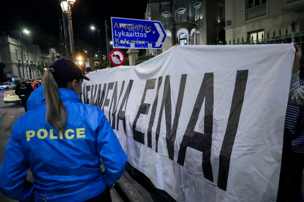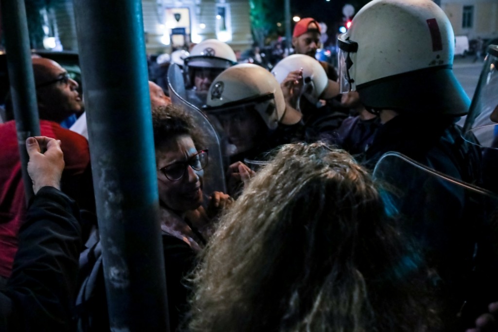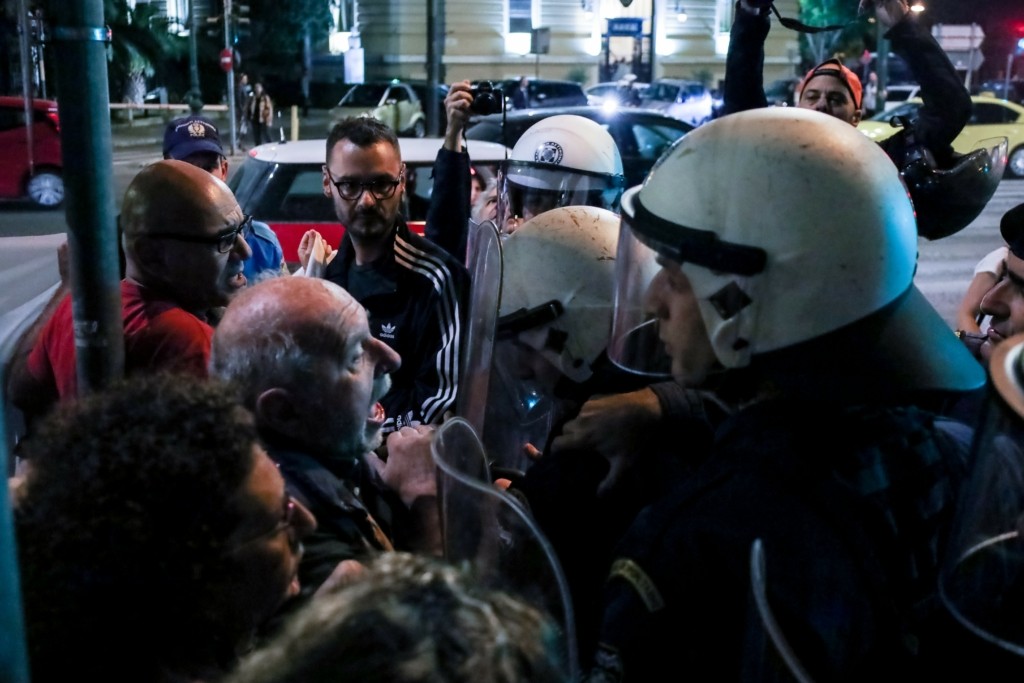 Στην συγκέντρωση δημιουργήθηκε μικροένταση μεταξύ αστυνομικών και διαδηλωτών.