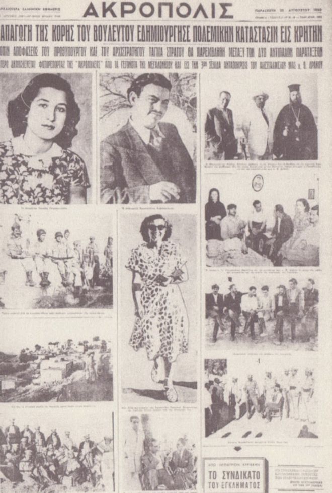 Στις 20 Αυγούστου του 1950, η 20χρονη Τασούλα, κόρη του του βουλευτή των Φιλελευθέρων, Γιώργη Πετρακογιώργη, έπεσε θύμα απαγωγής από τον 34χρονο Κώστα Κεφαλογιάννη, αδερφό του βουλευτή του Λαϊκού Κόμματος, Μανώλη, καθώς έβγαινε από τον κινηματογράφο “Όασις” στο Ηράκλειο.