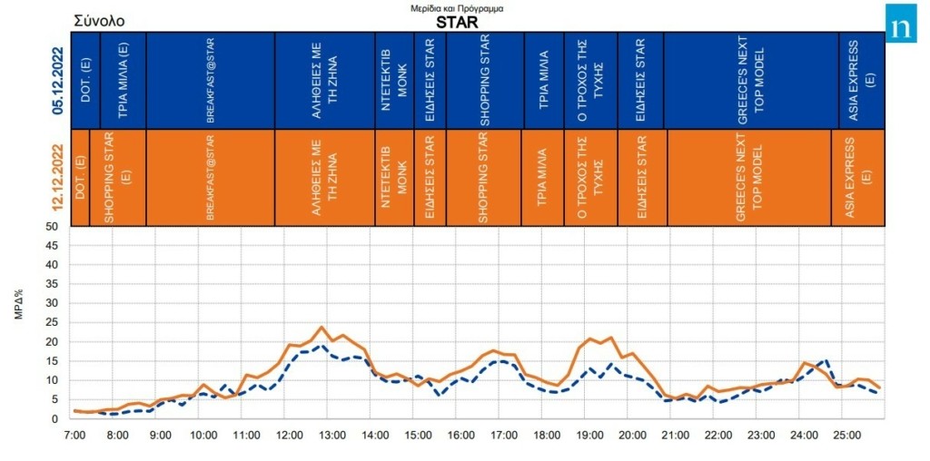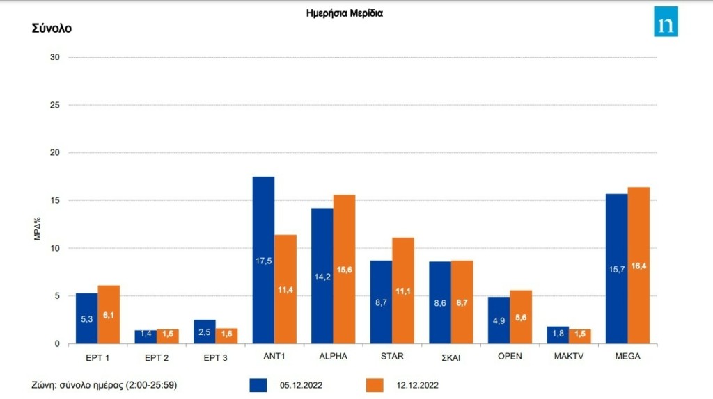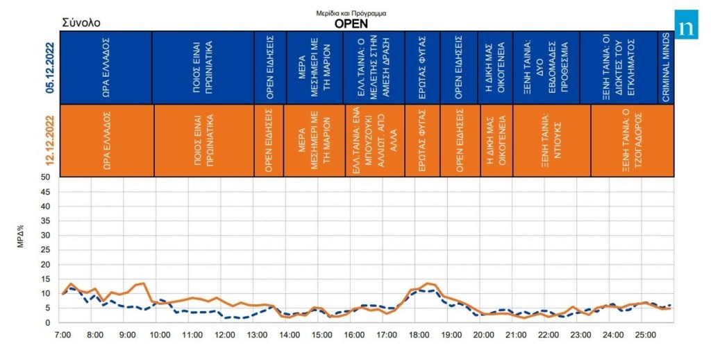 Κινητικότητα μερίδας κοινού κατέγραψε επίσης η Nielsen σε Star, ΕΡΤ1 και Open.