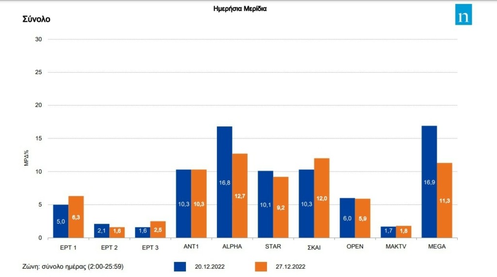 Υποχώρηση είχε η ΕΡΤ1 πιο θεαματική ήταν εκείνη του Open, τα μερίδια των οποίων είχαν διαστάσεις ανάλογες με την περίοδο προ των Χριστουγέννων.