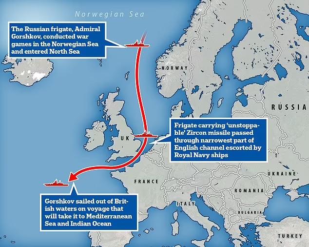 Από την πλευρά του, το Βασιλικό Ναυτικό εξέδωσε ανακοίνωση λέγοντας ότι το HMS Portland παρακολουθούσε τη ρωσική φρεγάτα και το συνοδευτικό του δεξαμενόπλοιο Kama καθώς το ζεύγος έπλεε στη Βόρεια Θάλασσα.