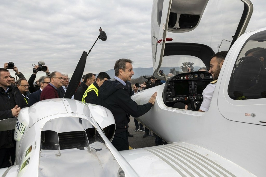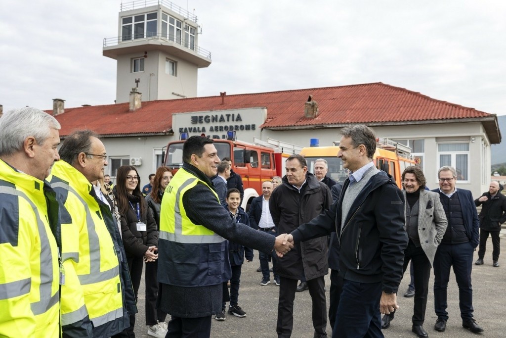 Πρώτος σταθμός του πρωθυπουργού ήταν ένα παραδοσιακό κατάστημα που προσφέρει τοπικά γλυκίσματα, στη Νέα Καρβάλη. Στη συνέχεια, επισκέφθηκε την εταιρεία «Egnatia Aviation», στο παλιό αεροδρόμιο του Αμυγδαλεώνα Καβάλας. Ο Κυριάκος Μητσοτάκης ξεναγήθηκε στις εγκαταστάσεις του αεροδρομίου και είχε την ευκαιρία να συνομιλήσει με εκπαιδευτές και μαθητές της σχολής εκπαίδευσης χειριστών πολιτικών αερογραμμών που έχει ιδρύσει η «Egnatia Aviation», με στόχο τη δημιουργία ενός πρότυπου για τα ευρωπαϊκά δεδομένα Κέντρου Αεροπορικής Εκπαίδευσης, ως μέρος της συνολικής επένδυσης ύψους άνω των 8 εκατομμυρίων ευρώ, η οποία αναμένεται να ολοκληρωθεί μέχρι το 2025.