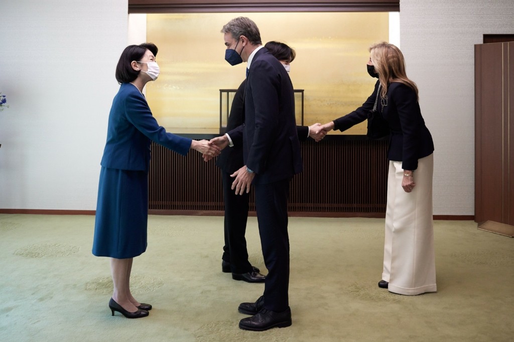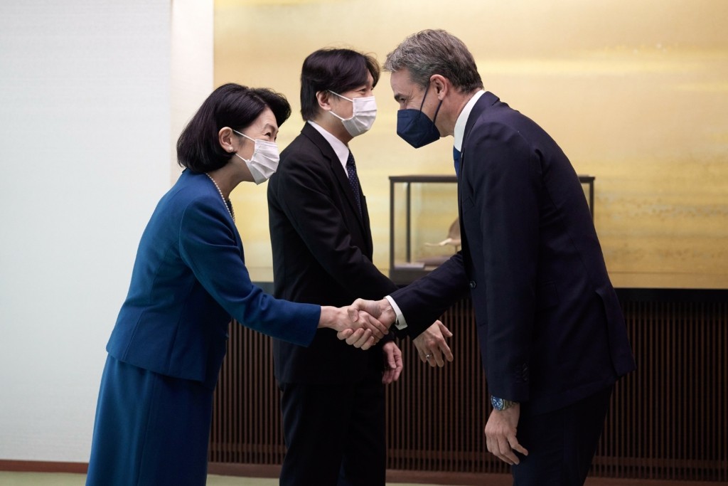 Συνάντηση με τον διάδοχο του ιαπωνικού θρόνου Πρίγκιπα Ακισίνο και την Πριγκίπισα Ακισίνο είχαν σήμερα ο Κυριάκος Μητσοτάκης και η σύζυγός του Μαρέβα Γκραμπόφσκι-Μητσοτάκη στο πλαίσιο της επίσημης επίσκεψης του Έλληνα πρωθυπουργού στην Ιαπωνία.