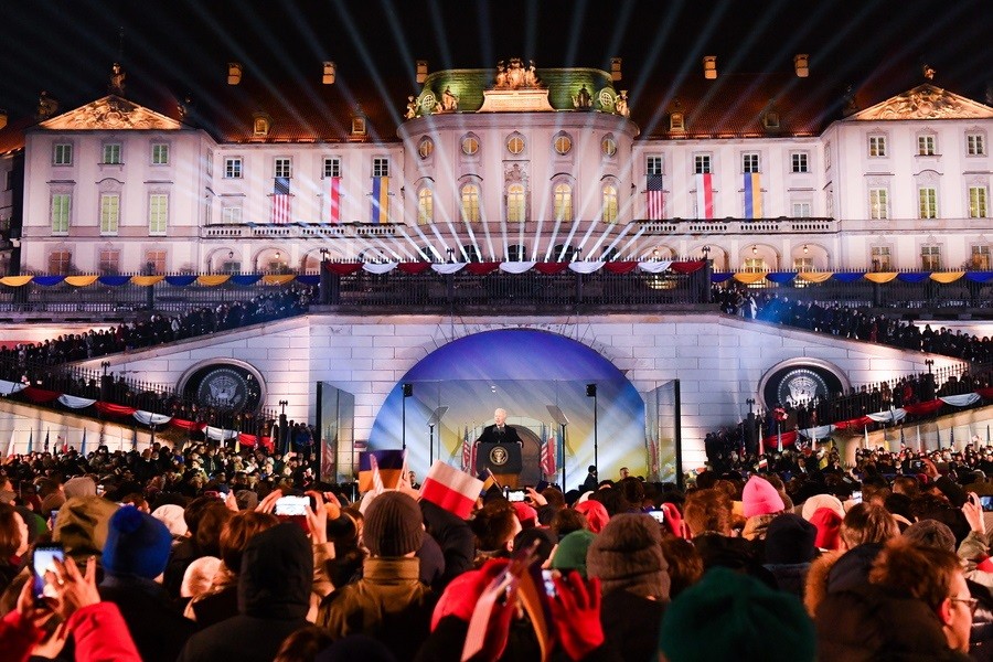 Ο πρόεδρος των ΗΠΑ Τζο Μπάιντεν απευθύνθηκε στο πλήθος που συγκεντρώθηκε έξω από το Βασιλικό Κάστρο στη Βαρσοβία της Πολωνίας, κατά την επίσκεψή του στη χώρα.