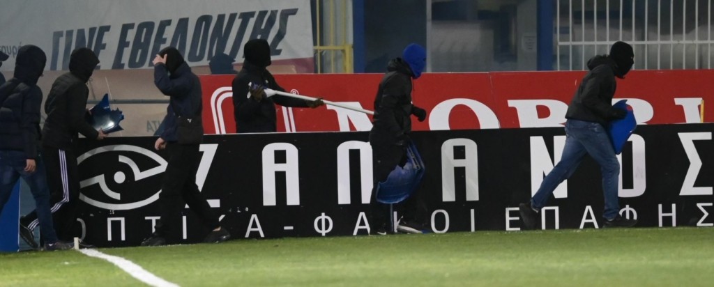 Οργανωμένοι οπαδοί του Ατρομήτου εκτόξευσαν φωτοβολίδες και άλλα αντικείμενα με αποτέλεσμα να υπάρξουν συμπλοκές.
