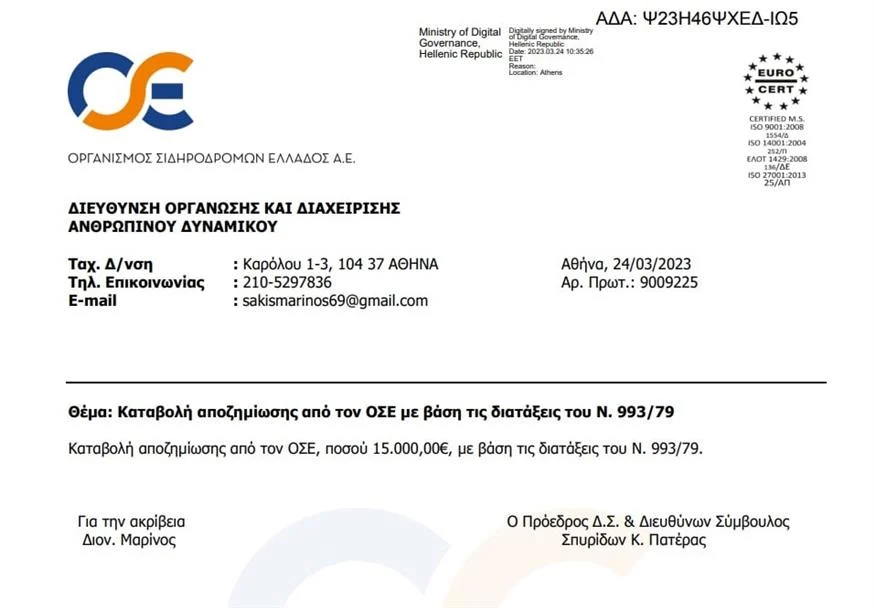 Ο «παραιτηθείς» κ. Πατέρας, μάλιστα, υπέγραψε προχθές έγγραφο για αμοιβές ως πρόεδρος και διευθύνων σύμβουλος του ΟΣΕ.